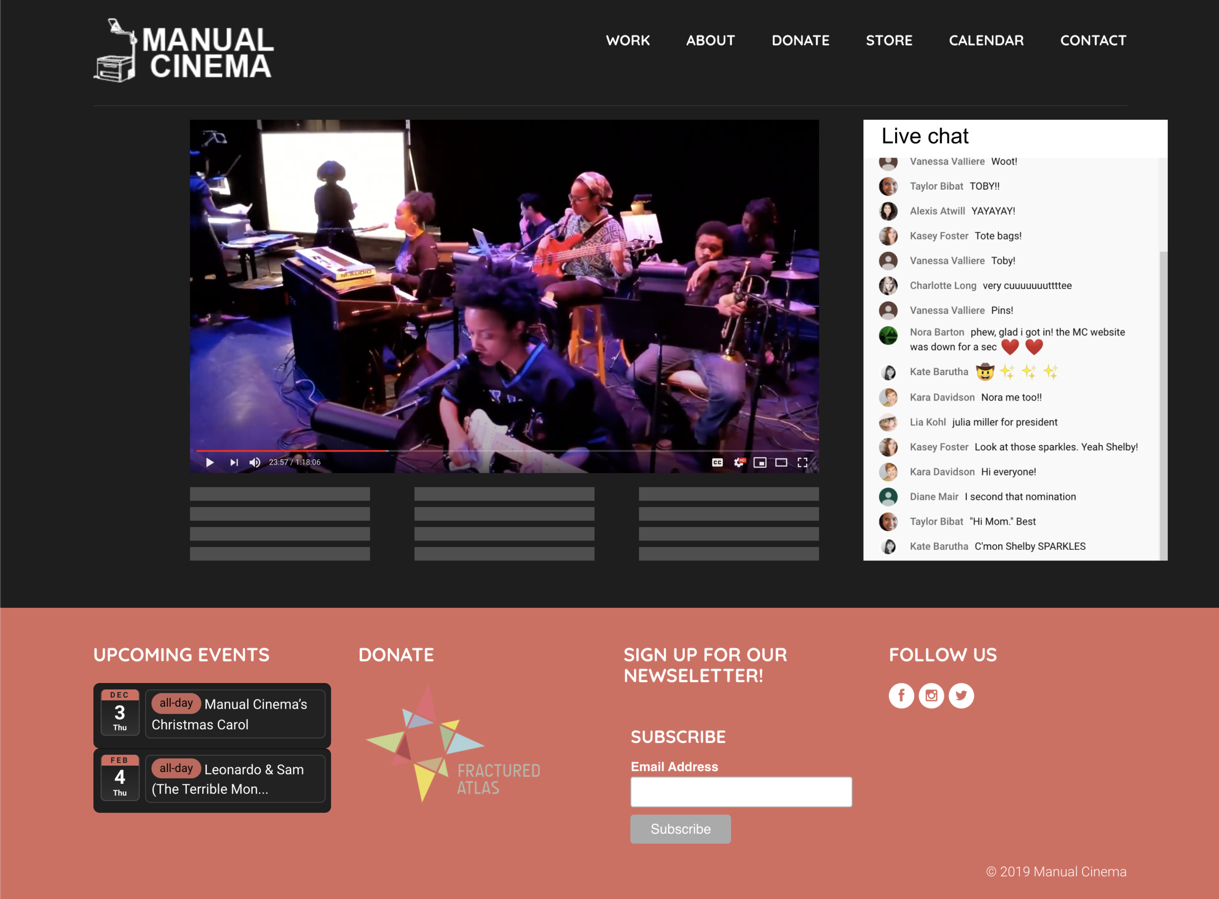 The biggest update we've been cooking up is Virtual Venue! You worked hard for your audience, so don't send them to YouTube, Zoom or Twitch for your big event. With Virtual Venue, the performance happens on your own website. Each ticket will be checked by our "virtual usher" so no more link sharing - each attendee must be a ticket buyer. Manual Cinema is using Virtual Venue for their Christmas Carol and so is Lightbox's Creative Code Festival. Reply to this email for more information.