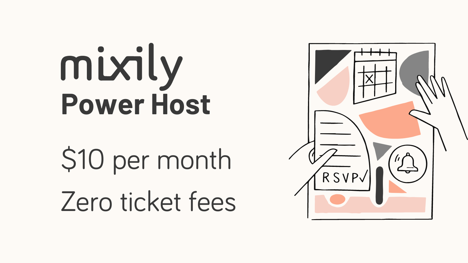 Do you hate paying fees on each ticket you sell? We have good news. This week we launched the first ever Mixily Subscription! As a Power Host you can pay an upfront $10 per month flat fee to use all the great features of Mixily and zero ticketing fees. So you can sell as many tickets, or more expensive tickets, and take in all the earnings (minus credit card fees). Plus, we're rolling out a bunch of new features for Power Hosts and this low rate won't last long, so subscribe now to get locked in at only $10 a month. Not looking to upgrade right now? No worries, the Mixily you know and love will remain free as a Core Host.