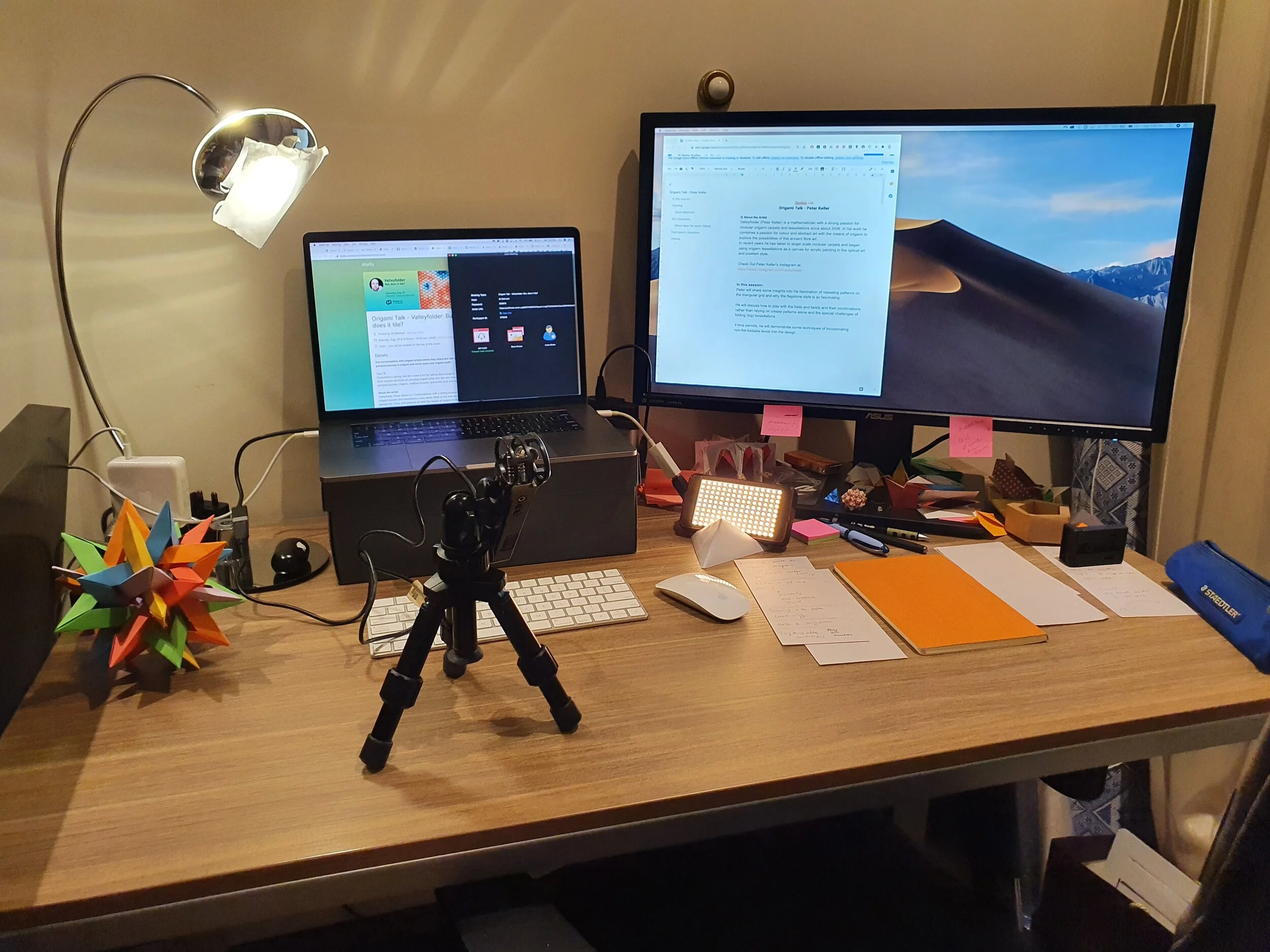 Ali Bahmani started making origami 10 years ago and when no one in his country, Iran, was involved in high level origami, he reached out to artists directly to learn more. He wrote a paper about teaching math through origami, and was invited to Tokyo University in 2014 to present. In Japan he met origami professionals face to face and the experiences that stuck with him most were the unofficial meetings more than the formal talks. He recorded his experience and interviews to capture it all. There is little information on the internet about many of the origami artists in Japan, and since Ali is fluent in Japanese, he was able to interview them. So far he hasn’t published any of his videos from his trips to Japan, but these experiences motivated him to start his series, Origami Talk, to connect the community of fellow origami enthusiasts. Early in quarantine Ali joined Quarantine Book Club and was inspired by their format and friendly atmosphere for his own events.